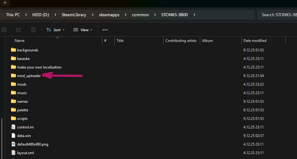 If you have STONKS-9800 in your Steam library, you can find the “mod_uploader” folder with the tool for uploading modifications.